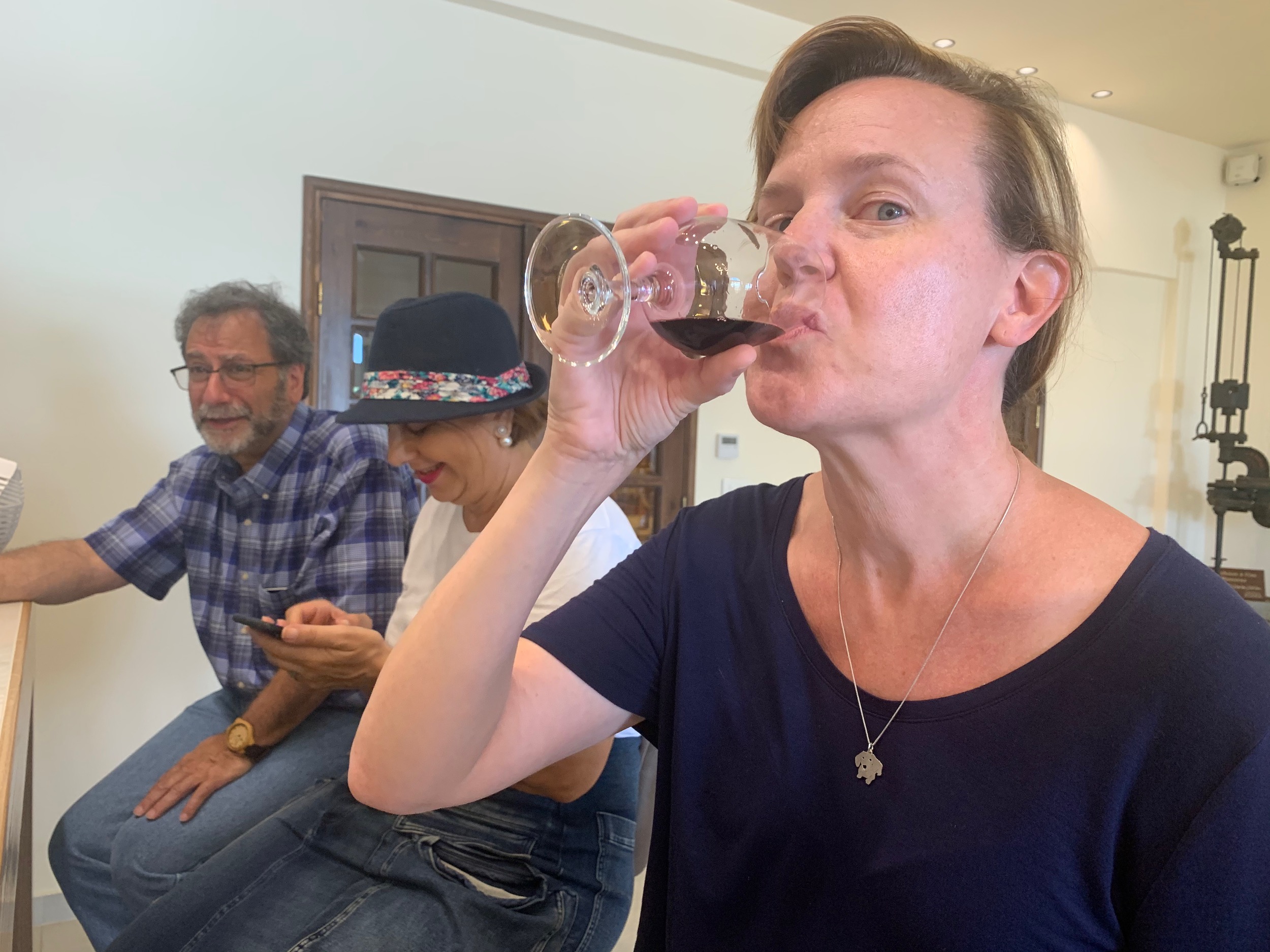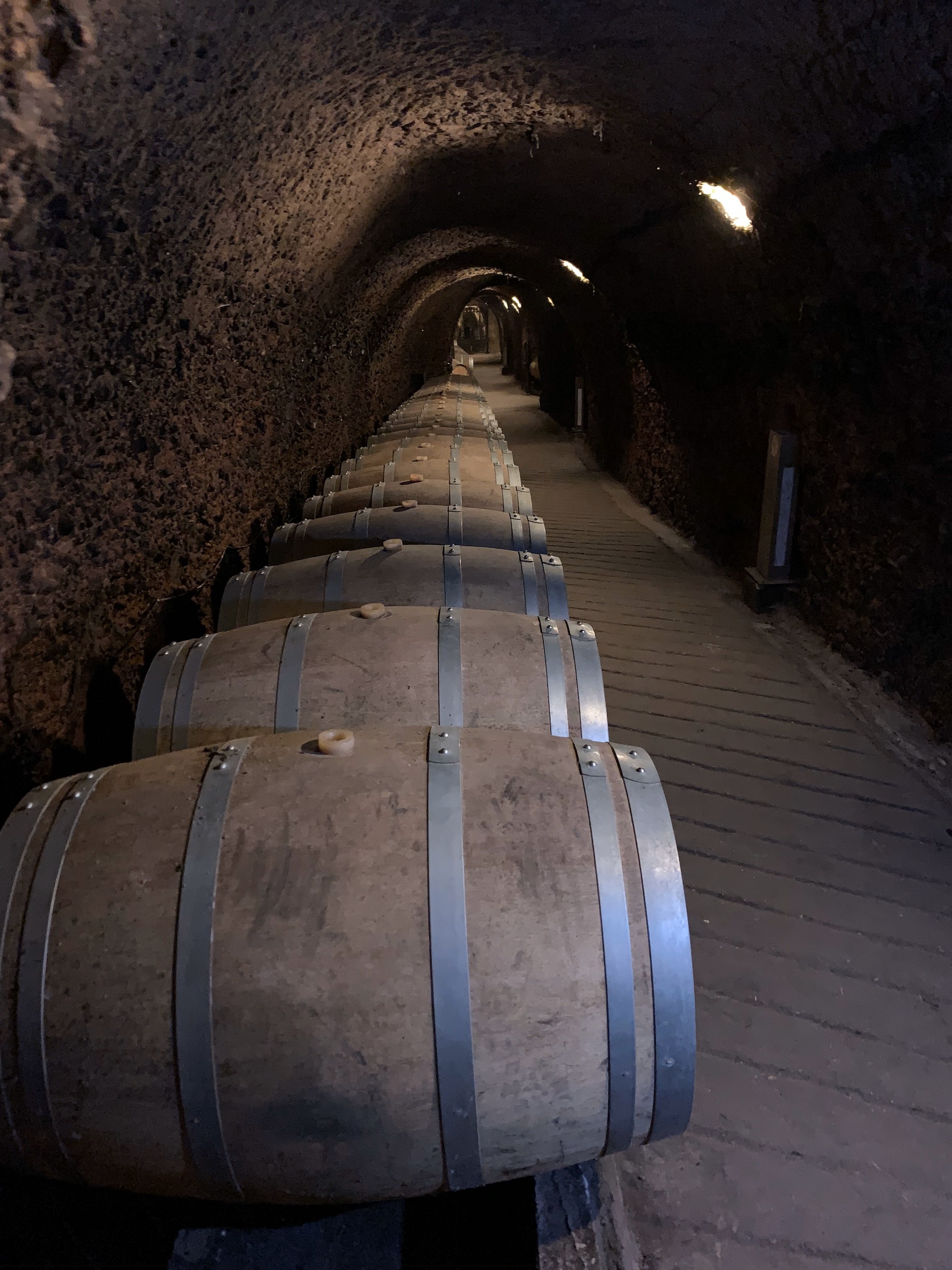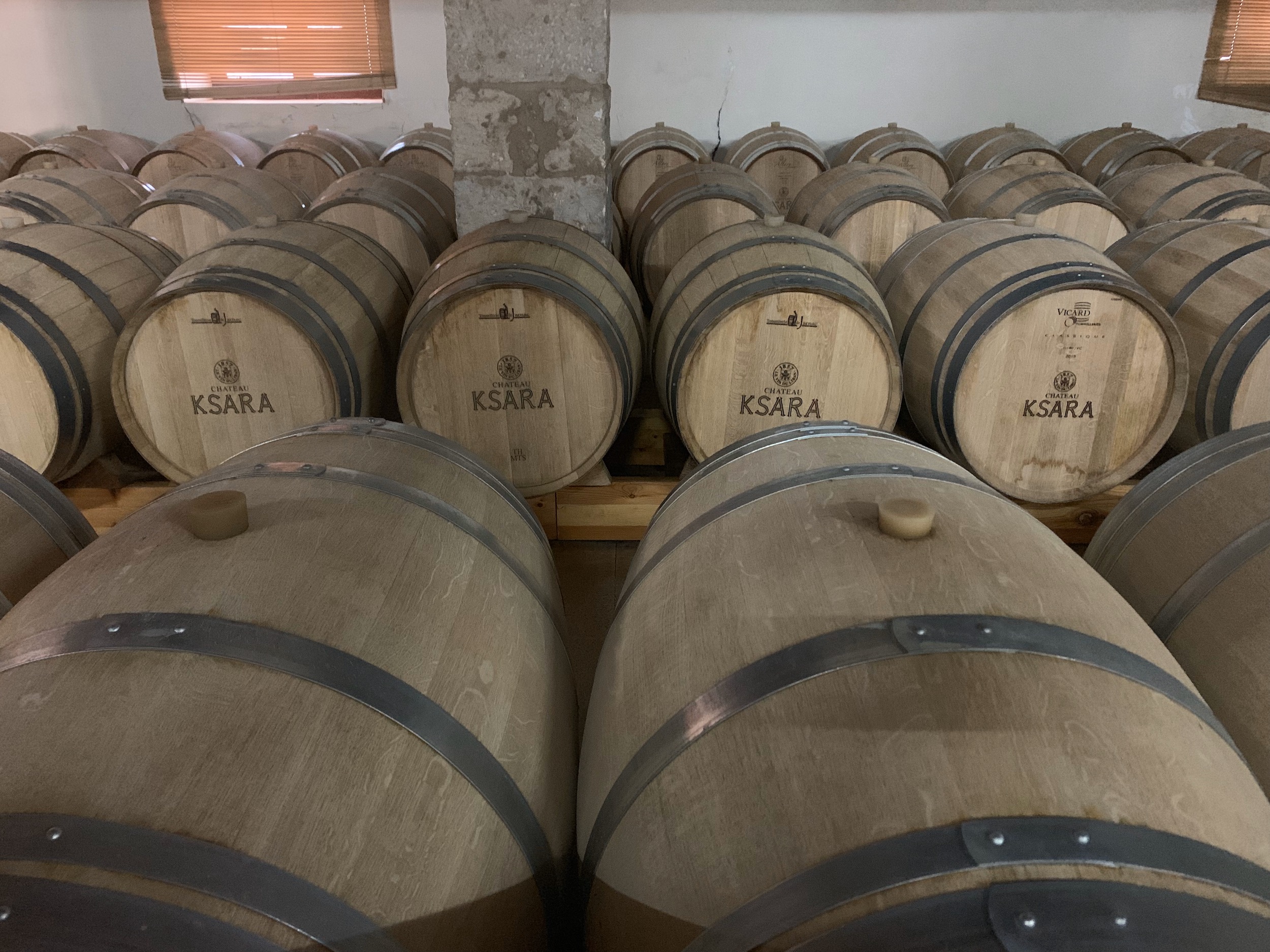 Our first stop was Château Ksara, Lebanon’s largest winery. It was founded in 1857 by Jesuit Priests. The priests started the winery to have wine for their ceremonies and for general consumption. They only increased production after accidentally discovering a cave on the grounds that was perfect for storing wine. The story goes that a fox was stealing their chickens and they followed it to find the fox had been hiding the chickens in a cave. The cave is 24 feet underground and almost 2 miles long. We were given the special behind the scenes tour, seeing the caves and production, followed by a free wine tasting. Only at the end did we learn that we were supposed to pay for the tasting and the tour that we went on was not the tour most people get to do. It seems Ismat has worked her fixer magic and we were “invited” guests.