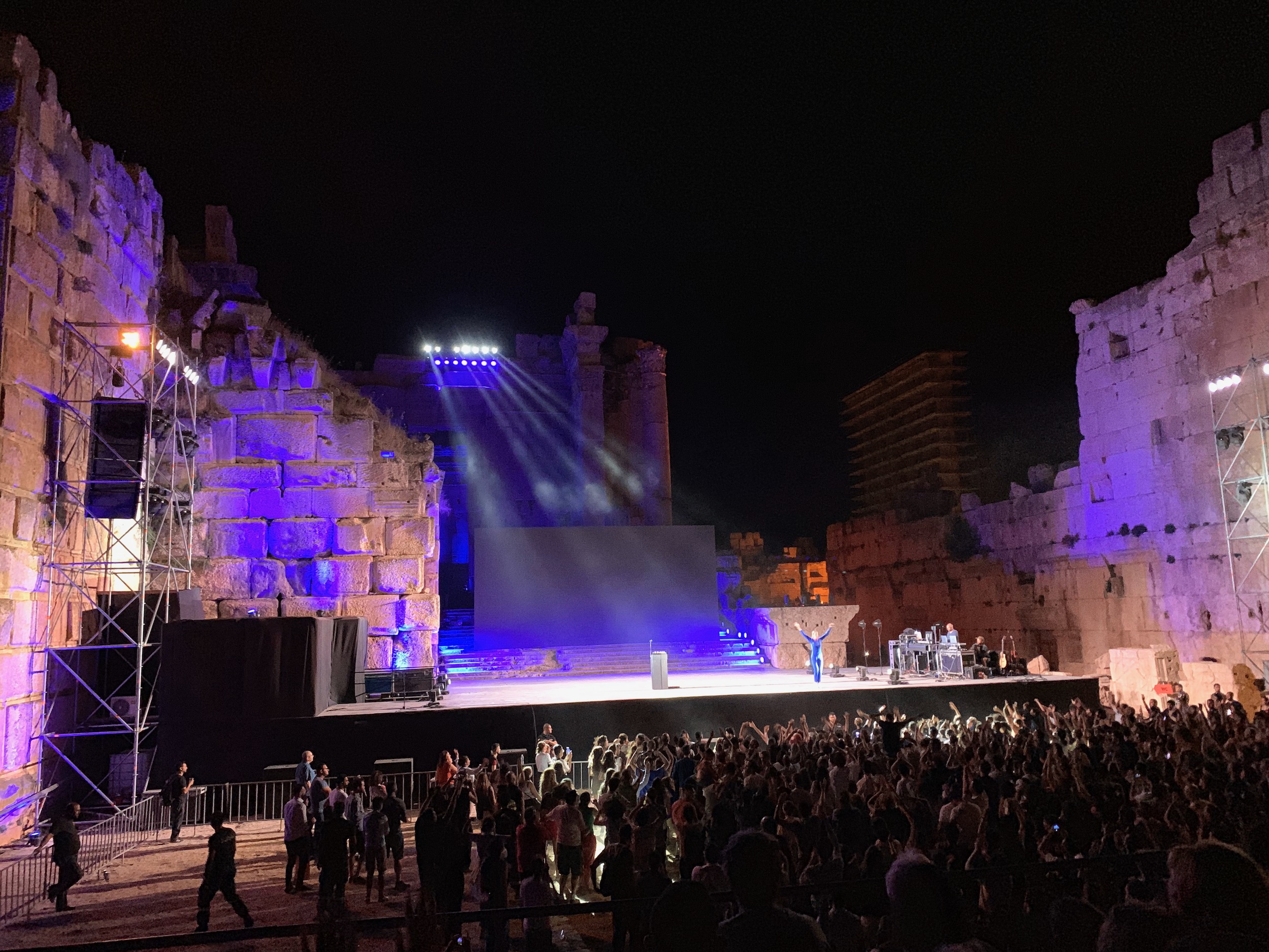 Now it was time for the festival to begin. The Baalbek International Festival began in 1954 and attracts a wide variety of international acts. The main stage for the festival is set right in the middle of the Roman ruins. This night’s main attraction was a concert by the French artist Jain. The concert began with a local opening act that takes older Lebanese songs and presents them in a modern way. Jain had a very simple stage set, just a small screen, a digital loop machine, and Jain herself. Matt and Laurie enjoyed the concert immensely. Our Lebanese friends were, how should we say, less than impressed.