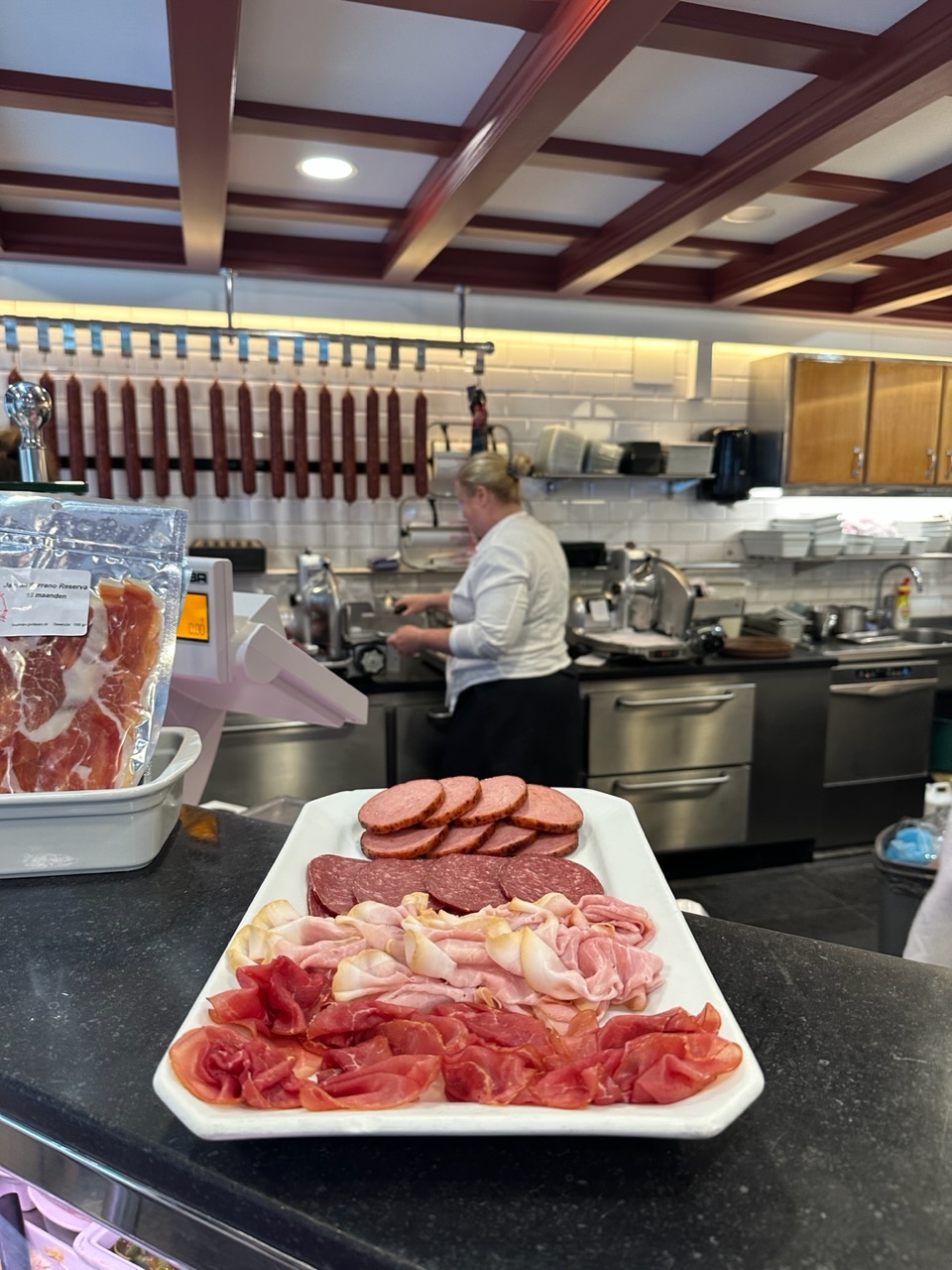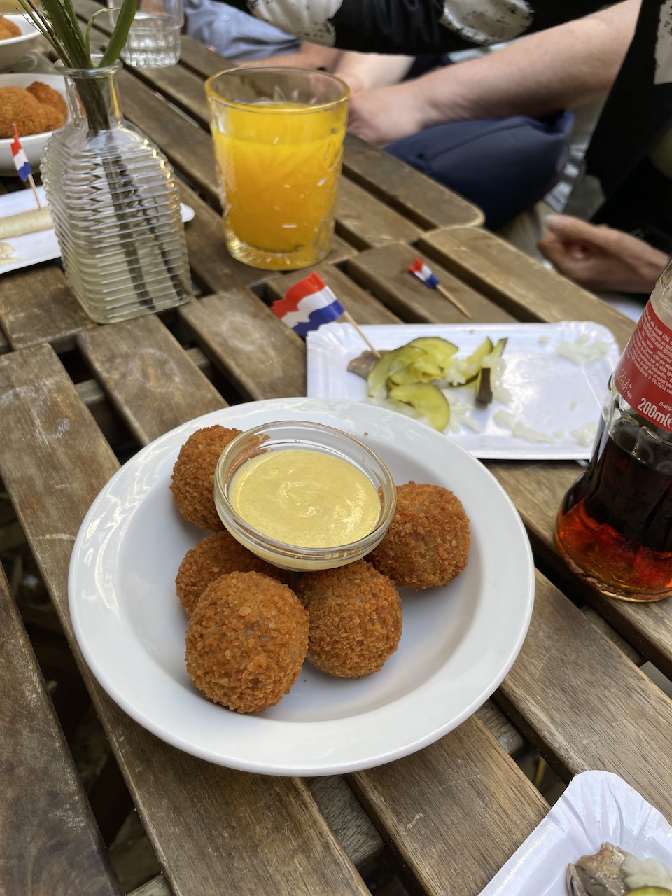 For lunch, we booked an Amsterdam Food tour. It was a 4-hour tour where we tried most of the notable or popular dishes and drinks in Amsterdam. Our first stop was at an old cafe that is one of the oldest cafes in Amsterdam. We tried traditional Dutch apple pie and coffee. At our next stop, we tried an Indonesian-style beef sandwich and beer. From there, we went to a dessert shop to try syrup waffles, chocolate truffles, and hot chocolate. To keep things interesting, they took us next to a butcher to try traditional Dutch sausages and meats. After the butcher, we made our way to a cheese shop where they age their own cheeses. We were served three different styles and ages of cheese with white wine. Our final stop was for herring, eel, and Bitterballen (a Dutchmeat-based snack, made by making a very thick stew thickened with roux and beef stock and generously loaded with meat) with beer.