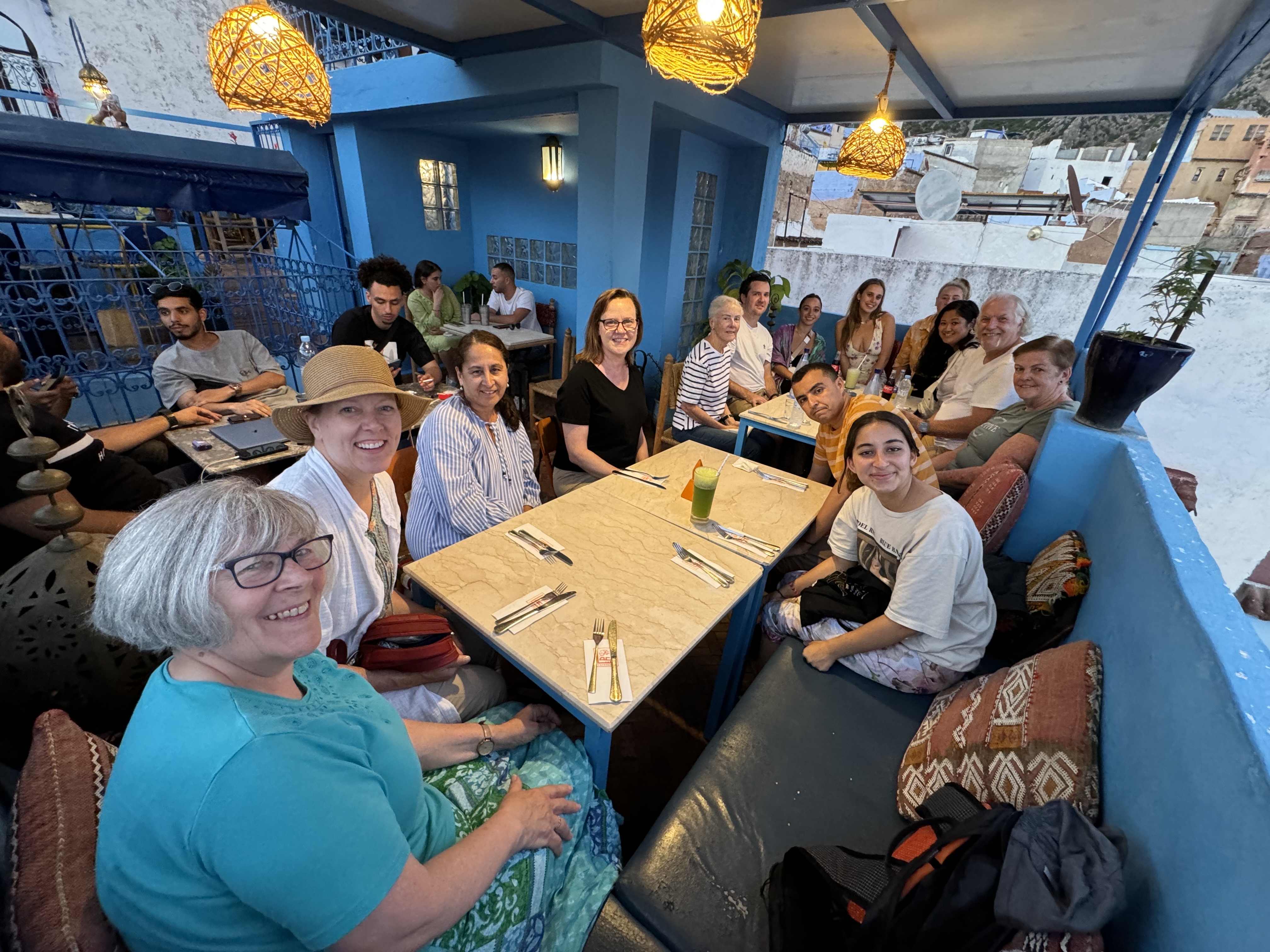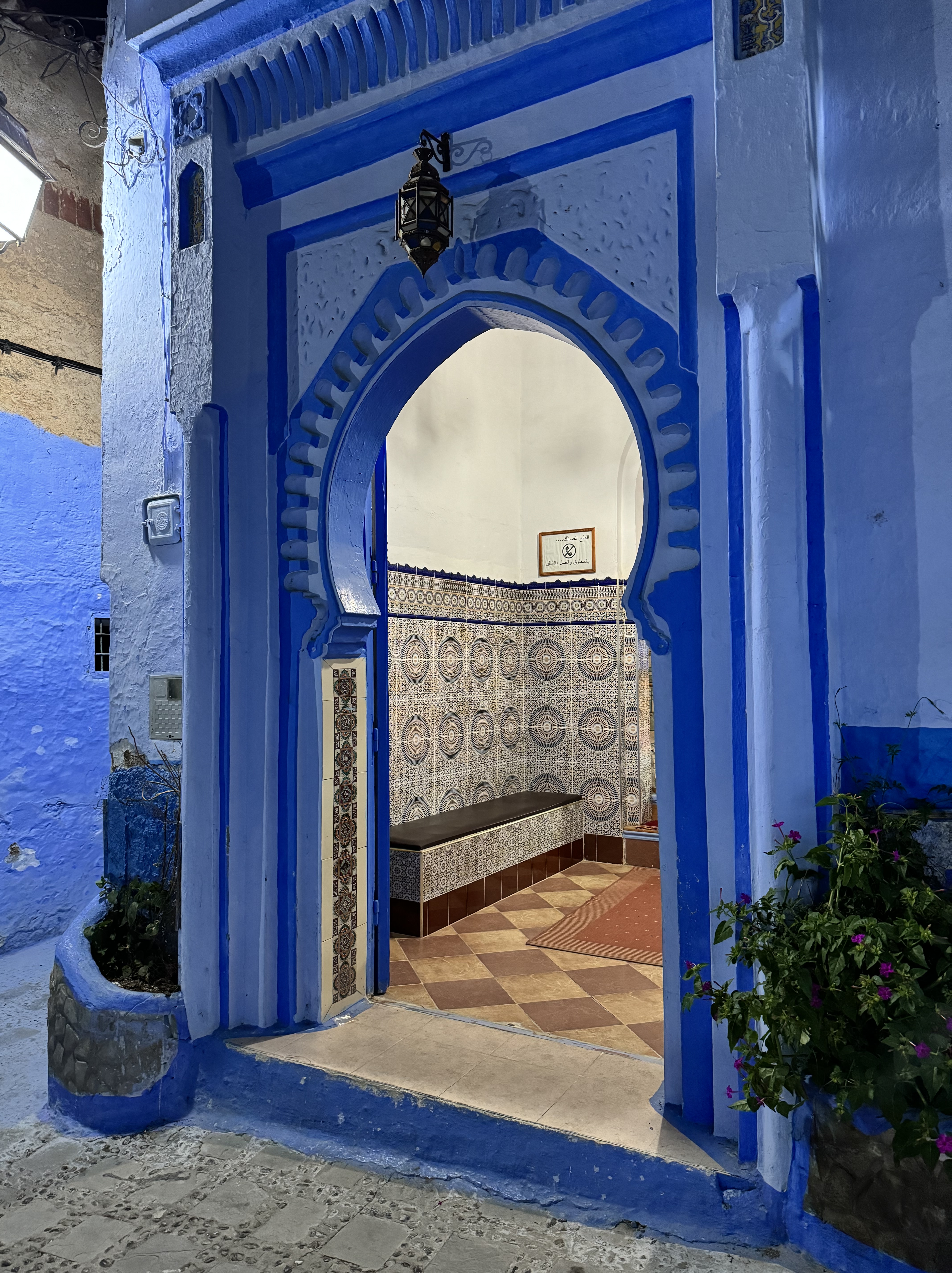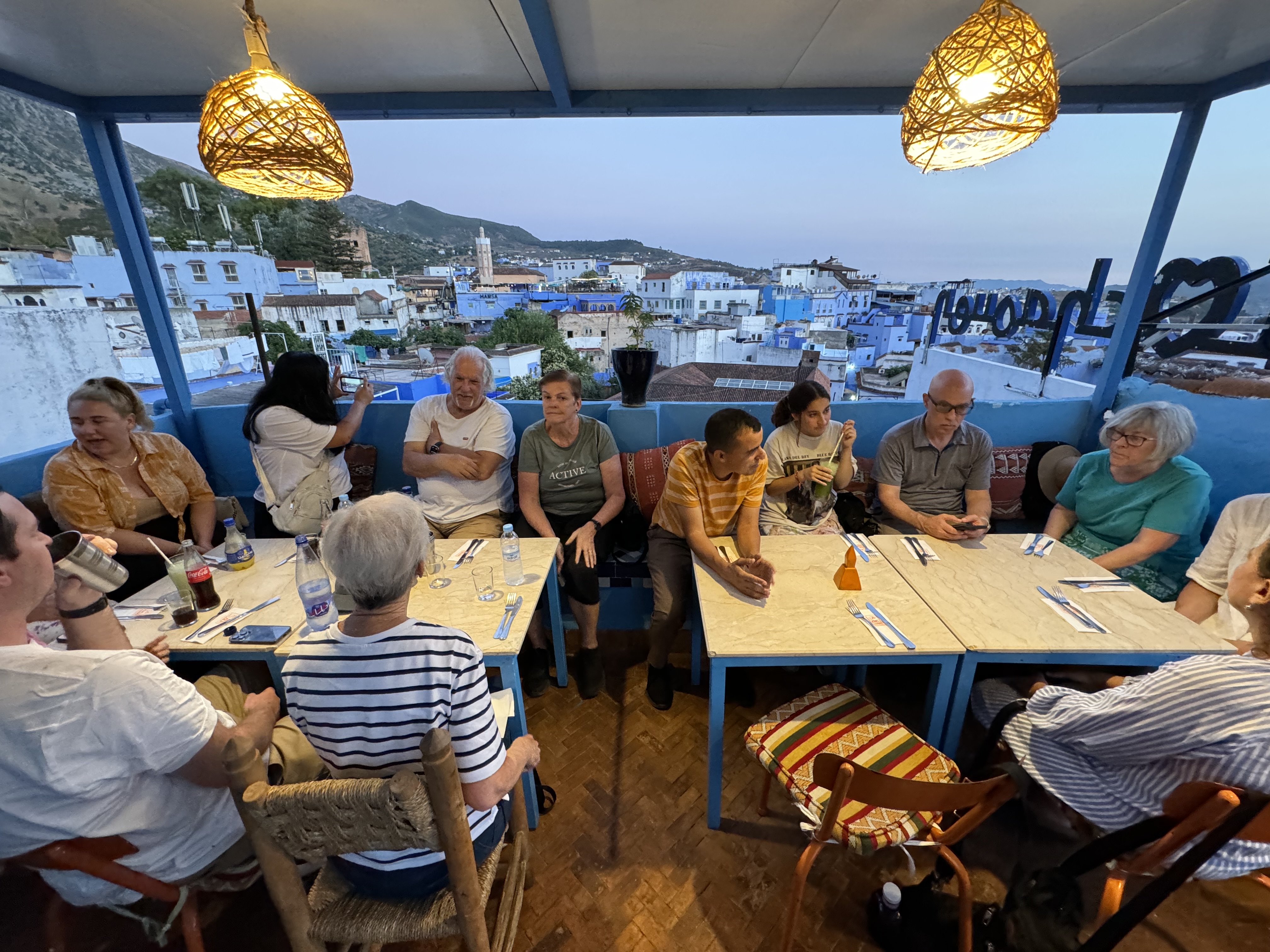 After leaving Tangier, we had another 2 hours before we arrived in Chefchaouen. Good for you if you can pronounce that name. Our hotel was nice, quirky, and is located just outside of the center of the Medina. After dropping our bags in our room and taking a few minutes to rest, we headed out for an orientational walk with our guide and then dinner with the group.