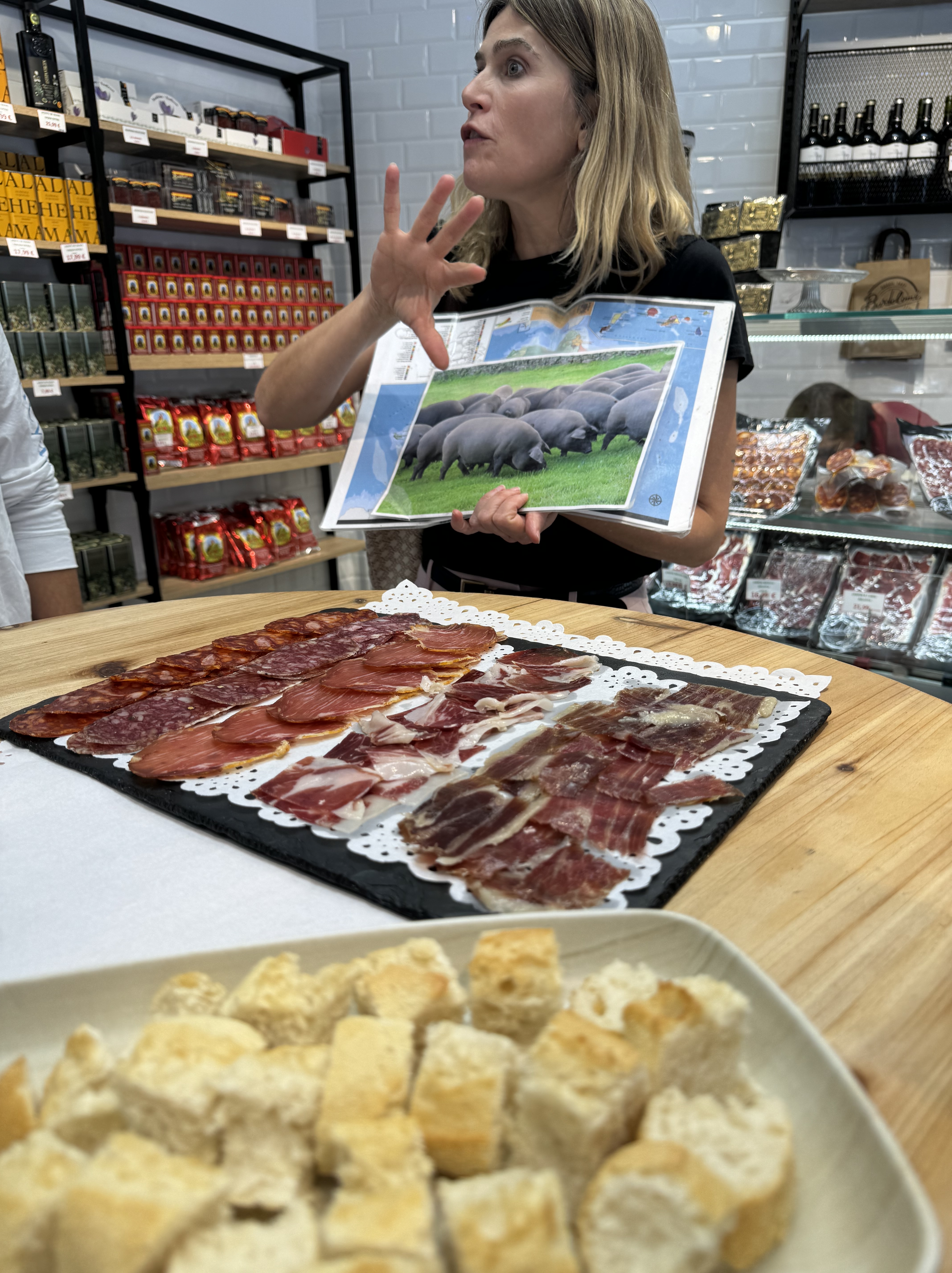 - Bartolomé: Arbequina olive oil, Iberian ham (bellota & cebo), salchichón, chorizo and lomo.