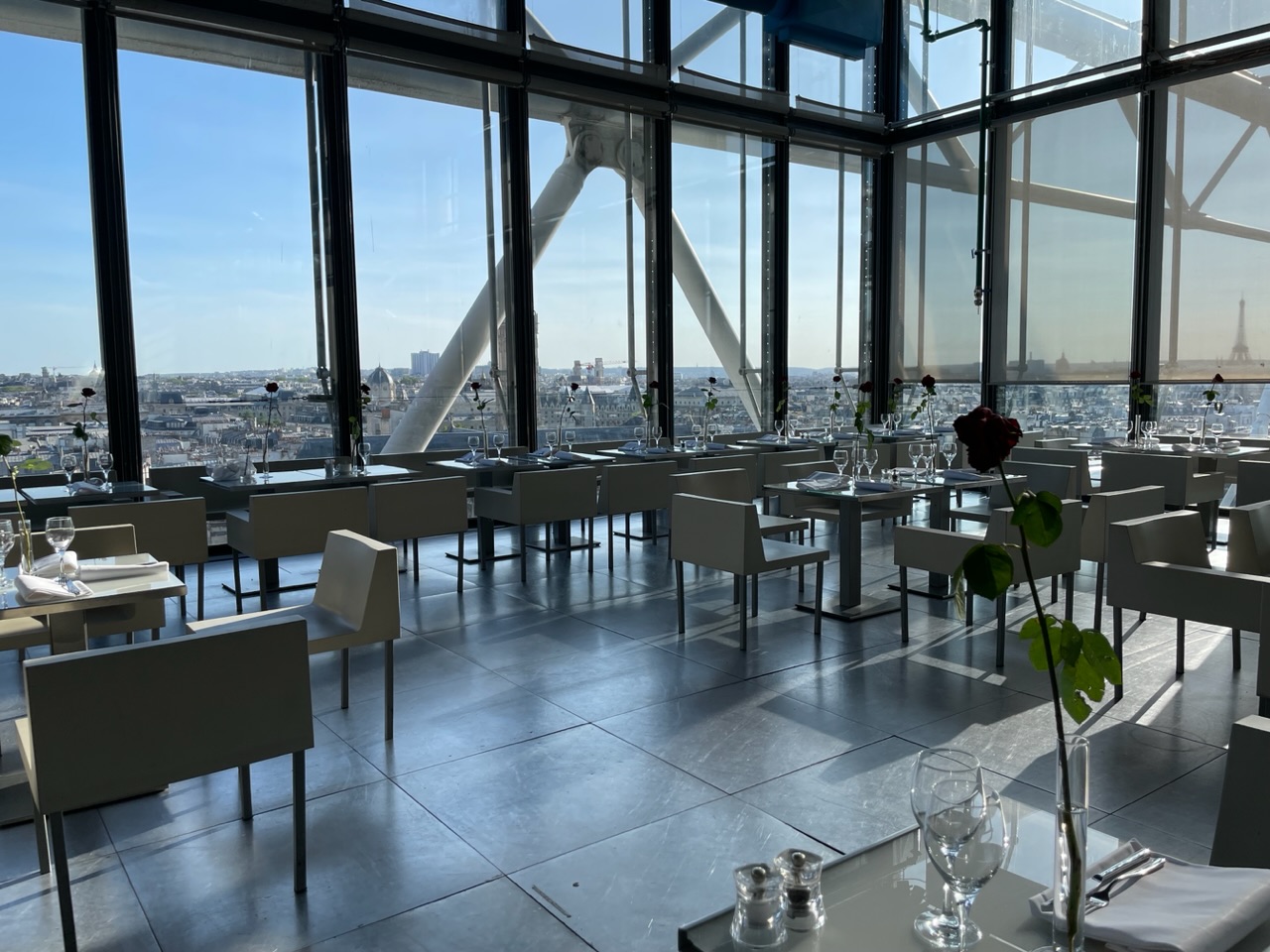 We had reservations at Le Georges on the roof of The Centre Pompidou with panoramic skyline views of Paris. We had high expectations for dinner and they were not met, at all. We seemed to get the waitstaff that was on her first day. All of the tables around us were receiving a completely different experience than we received. The food was average and the restaurant itself is in a glass bubble so it was quite warm.